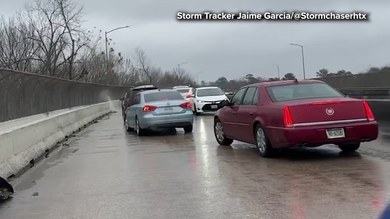 A storm chaser captured a video of drivers turning around, going the wrong way, to avoid ice that froze over a bridge in east Houston.
