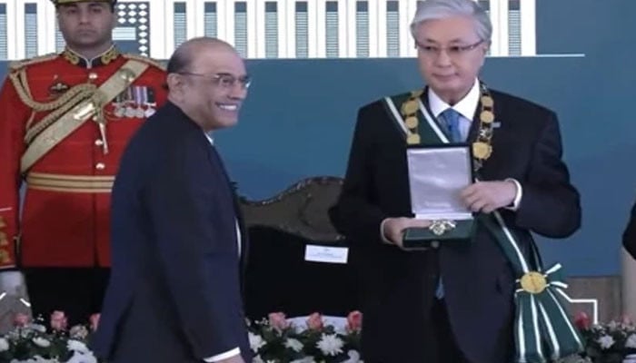 In a significant development in bilateral relations, President Asif Ali Zardari awarded Kazakhstan’s President Kassym-Jomart Tokayev the Nishan-e-Pakistan, the country’s highest civilian honor. The move reflects the deepening ties between the two nations and their shared commitment to regional cooperation.