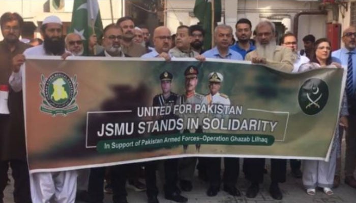Professor Anbarin Otho, the principal of the Sindh Medical College, said in her address that the young generation stands shoulder to shoulder with the armed forces. “The sacrifices made for the protection of national security will always be remembered,” she said. “The nation is with its armed forces, and we salute their resolve.”
