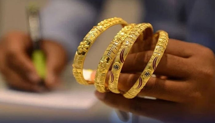 The prices of gold in the markets across Pakistan continued to drop for the third consecutive day, according to the All Pakistan Sarraf Association (APSA). The price of gold per tola decreased by Rs. 8,700 to Rs. 524,056. The price of 10 grams of gold also dropped by Rs. 7,459 to Rs. 449,727. The global market saw a slight decrease in gold prices, with the price per ounce dropping to $50.18.