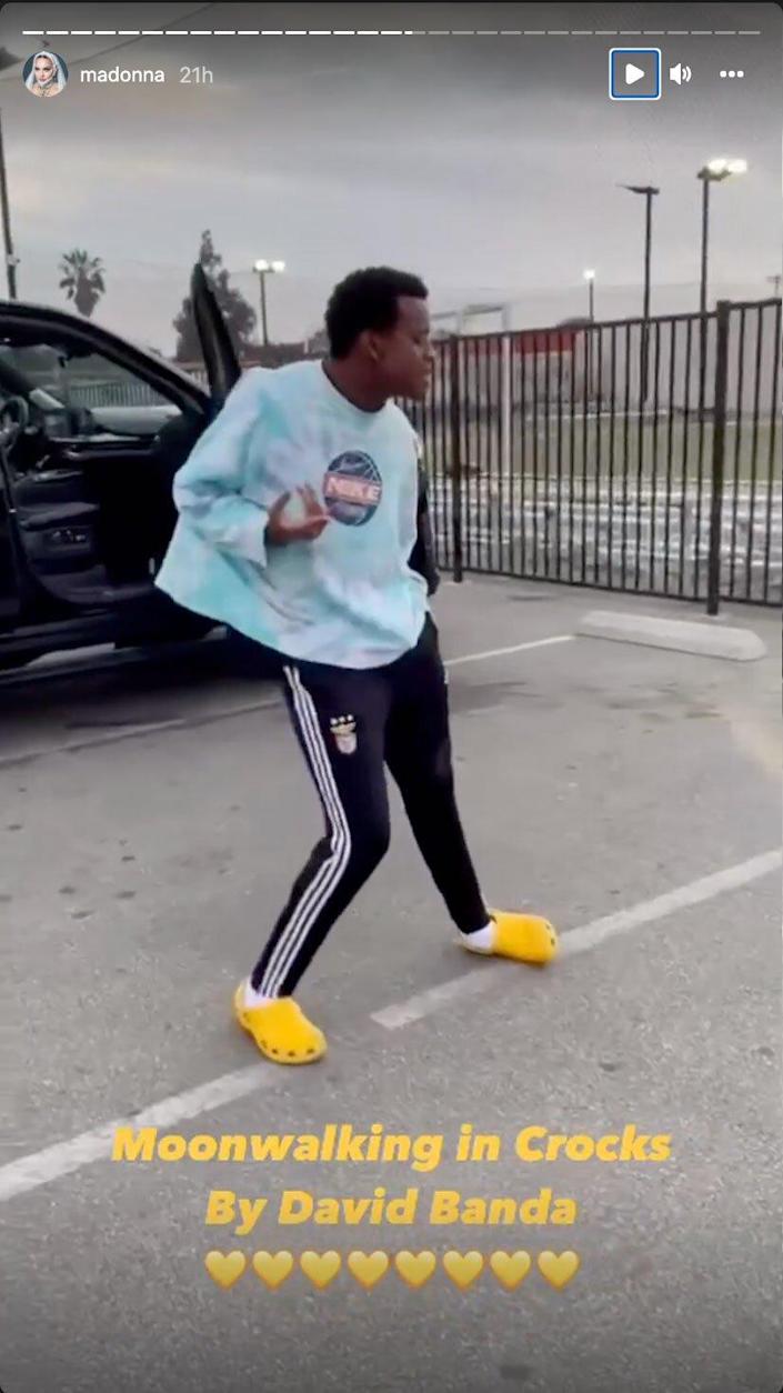 The Queen of Pop’s Instagram Story posts showed additional snippets of David dancing the moonwalk to Michael Jackson outdoors in front of a black SUV.
